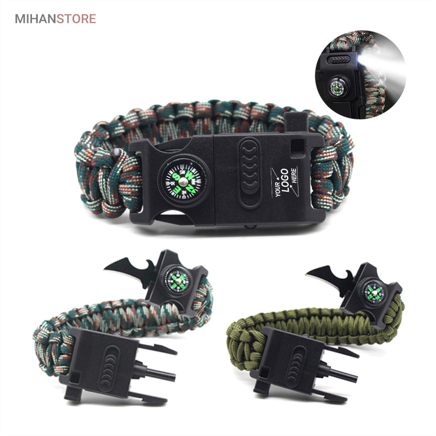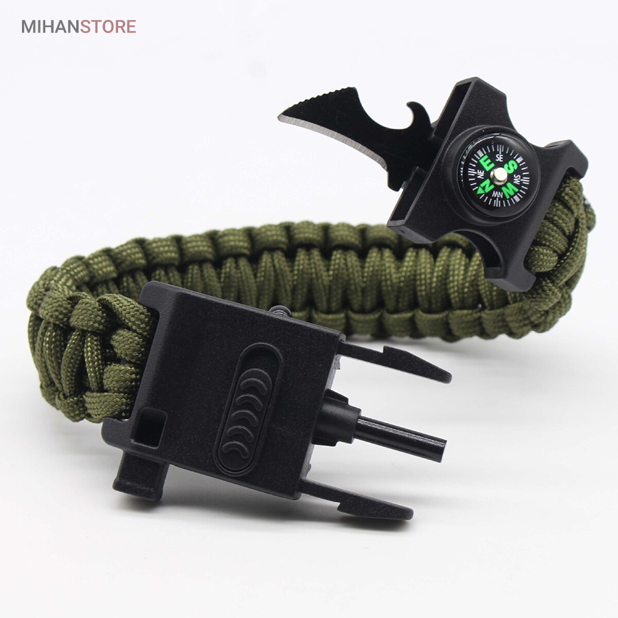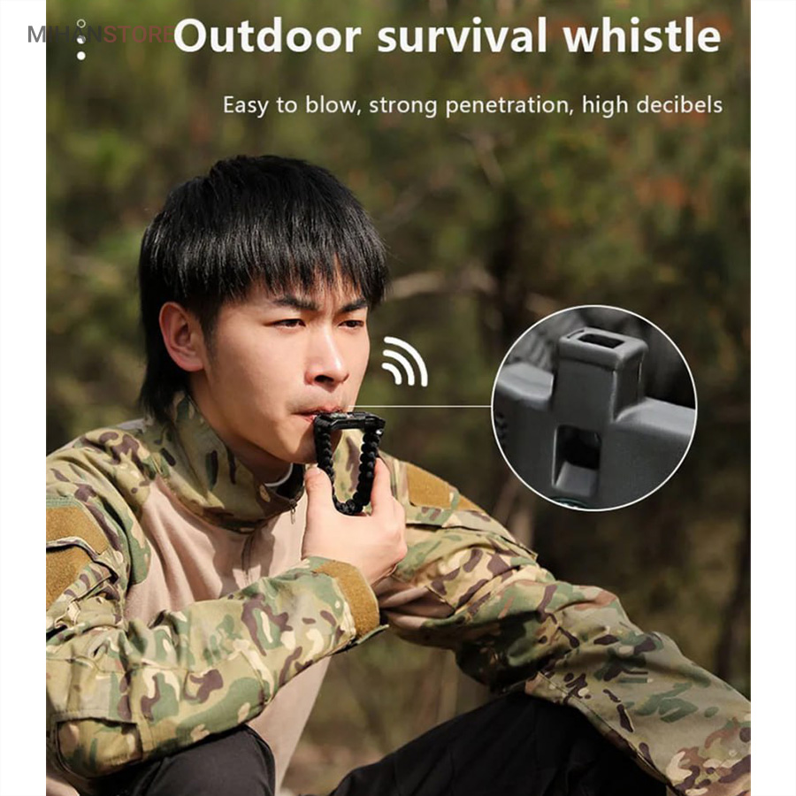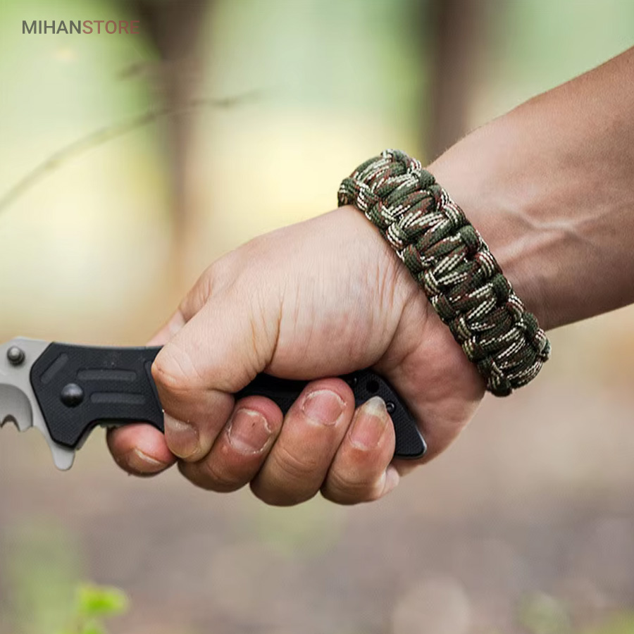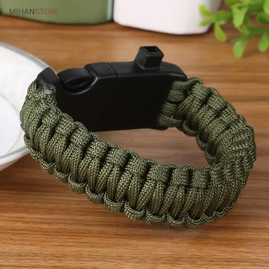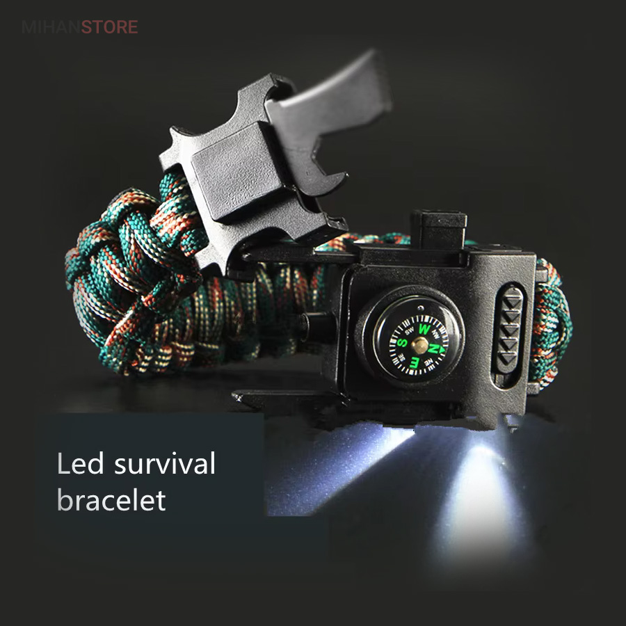 دستبند نجات، دستبند پاراکورد، ابزار نجات، وسایل کمپینگ، ابزار بقا، چاقو اضطراری، طناب نجات، سوت اضطراری، چخماق، دستبند چندکاره