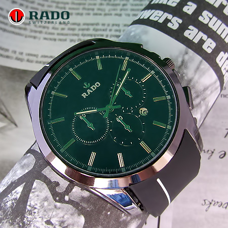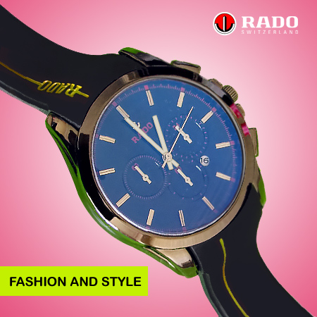با سلام. کلیات ساعت مشکی است دوست عزیز اما اون خط ها و لوگو رادو با رنگ های زرد ابی قرمز سفید موجود است که هنگام ثبت سفارش در قسمت پیام سبد خرید میتونید ذکر کنید
